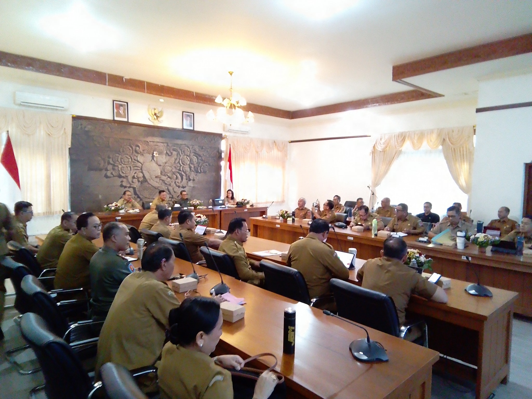 Rapat dipimpin Bupati Buleleng Buleleng dan Wakil Bupati Buleleng didampingi Sekretaris Daerah Kabupaten Buleleng dan dihadiri pimpinan SKPD.Sekretaris Daerah Kabupaten Buleleng mengevaluasi masing-masing OPD terkait pelaksanaan kegiatan pembangunan daerah Triwulan I dan memberikan arahan untuk segera memproses pengadaan belanja yang belum terealisasi. kegiatan ini bertujuan guna mengevaluasi seluruh program kegiatan yang telah berjalan pada tahap triwulan pertama di tahun 2025 ini.