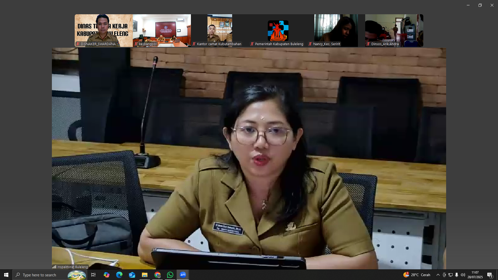 Hari ini Senin 28 Juli 2025, Dinas Tenaga kerja kabupaten Buleleng yang diwakili PPPK Oprator Website/PPID, mengikuti Rapat Virtual Tehnikal meting kegiatan Lomba Reels, Antikorupsi dengan tema “Pelayanan Publik Prima Bebas Dari Korupsi: Antikorupsi, Bisa!, kegiatan ini di selengarakan, dalam rangka HUT Republik Indonesia ke- 80 sekaligus Pembelajaran Antikorupsi kepada Pegawai SKPD di lingkungan Pemerintah Kabupaten Buleleng. Kegiatan Lomba Reels Antar SKPD ini dimaksudkan sebagai media edukasi dan kampanye kreatif untuk membangun budaya antikorupsi, khususnya dalam Pelayanan Publik Prima bebas dari korupsi di lingkungan pemerintahan daerah. Melalui pendekatan visual yang menarik dan mudah diakses, diharapkan pesan-pesan antikorupsi dapat lebih luas diterima, dipahami, dan diinternalisasi oleh seluruh pegawai SKPD serta masyarakat umum. Adapun hal hal yang disampaikan dalam tehnikal meting tersebuat antara lain, Peserta merupakan perwakilan resmi dari masing-masing SKPD di lingkungan Pemerintah Daerah (boleh individu atau tim). Setiap SKPD wajib mengirimkan minimal 1 (satu) karya video reels untuk dilombakan. Pendaftaran dan pengiriman video dilakukan mulai tanggal 28 Juli 2025 sampai dengan 8 Agustus 2025 , Pendaftaran dilakukan dengan mengajukan surat yang ditujukan kepada Sekretariat PAKSI Kab. Buleleng pada Inspektorat Daerah Kabupaten Buleleng yang disertai dengan link video yang telah diunggah pada akun instagram resmi perangkat daerah , Karya harus diunggah di akun Instagram resmi perangkat daerah dengan menggunakan hashtag #PariwaraAntikorupsi #SKPDBersih #AntikorupsiBisa, #PelayananPublikPrimaBebasDariKorupsi, #BersihTanpaKorupsi, Akun Instagram Peserta wajib berkolaborasi dengan akun Instagram @Itda_Buleleng, dan menandai akun resmi KPK: @official.kpk, @suaraantikorupsi.kpk, @aclc.kpk, Rapat dibuka oleh sekretaris Inspektorat Kab, Buleleng dan di ikuti seluru SKPD, Camat lingkup Pemerintah Kabupaten Buleleng.