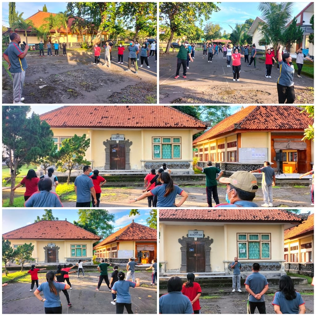 Dinas Tenaga Kerja melaksanakan Apel pagi dan Senam Bersama di UPTD BLK Kabupaten Buleleng pada hari Jumat, 18 Maret 2022 yang Apel Pagi dipimpin langsung oleh Kepala Dinas Tenaga Kerja Kabupaten Buleleng (Drs. Komang Sumertajaya), yang diikuti seluruh Pegawai PNS/Kontrak Dinas Tenaga Kerja dan UPTD BLK Kabupaten Buleleng. Dalam kesempatan Apel Pagi ini Bapak Kepala Dinas Tenaga Kerja Kabupaten Buleleng (Drs. Komang Sumertajaya) memberikan arahan agar lebih mengefesienkan kinerja dan mempersiapkan kinerja UPTD NLK sebelum Kepala UPTD BLK memasuki Purna Bakti