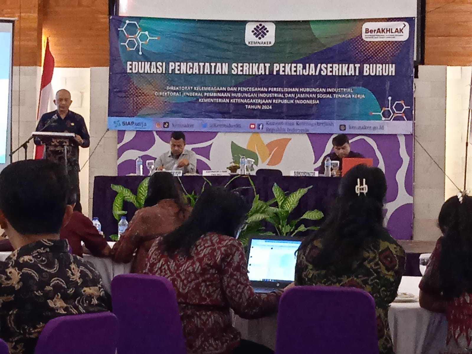 Selasa (7/5) Plt Kabid HI dan Fungsional Mediator Disnaker Kab Buleleng mengikuti Edukasi Pencataran Serikat Pekerja/Buruh di Grand Mega Resort. Kegiatan ini dibuka oleh Kadisnaker dan ESDM Prov. Bali. Hadir dalam acara tersebut Pejabat Hubungan Industri dan Mediator Prov dan Kab/Kota se Bali. Tujuan dilaksanakannya Edukasi tersebut agar ke depan bagi perusahan yang memiliki Serikat Pekerja/Buruh agar mencatatkan pada Disnaker Kab/kota setempat sehingga Perusahan tersebut dalam membuat PKB agar ada kesepakatan antara pekerja dengan perusahaan. pencatatan Serikat pekerja mengacu pada UU 21/2020 tentang Serikat Pekerja/buruh dan Kepmenakertrans No21/2001 tentang Tata Cara Pencatatan Serikat Pekerja/buruh. Dalam kwnenakeetran tersebut jika Serikat pekerja tidak dicatatkan maka dianggap batal dan perusahan belum boleh membuat PKB.