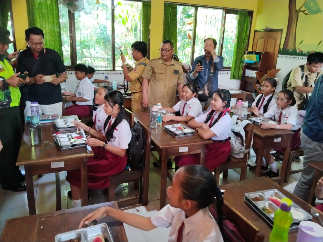 Hari ini :Senin 19 Mei 2025 Plt. Kepala Dinas Tenaga Kerja Kab. Buleleng Menghadiri progam kegiatan makan bergizi gratis yang dilaksanakan di wilayah Kabupaten Buleleng Khususnya di kec. Banjar oleh SPPG Buleleng Banjar Dencarik dengan sasaran siswa sekolah TK dan SD yang ada di kecamatan Banjar kegiatan ini sesuai dengan keputusan Perpres nomor. 83 / tahun 2024 tentang badan gizi nasional progam makan bergizi gratis tahun 2025. Kegiatan ini diawali dengan pembukaan KASPPG Buleleng, Banjar Dencarik yang dilanjutkan dengan launching secara simbolik pemberian makanan secara simbolis kepada perwakilan anak-anak siswa serta testimoni dari penerima manfaat perwakilan sekolah. Kegiatan ini turut dihadiri Pimpinan SkPD serta undangan Terkait.