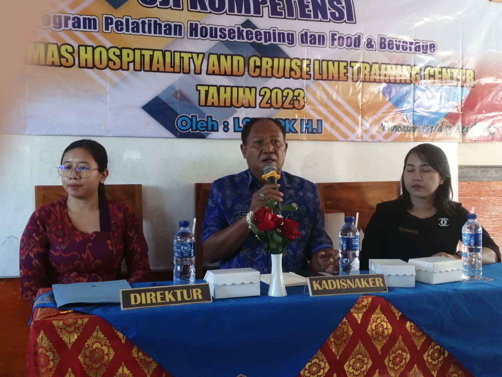 Selasa 11 April 2023 Kepala Dinas Tenaga Kerja Drs Komang Sumertajaya yang didampingi oleh Staff Gede Budiadnyana,S.Sos ,menghadiri Undangan sekaligus membuka acara Uji Kompetensi di LPK CANDI MAS HOSPITALITY dan CRUISE INTERNATIONAL CENTER, adapun program yang di hitung yaitu F&B Service, sebanyak 41 peserta , F&B PRODUCT sebanyak 22 peserta dan HOUSE KEEPING 41 peserta , dengan jumlah total 104 peserta , yang diuji oleh LSP HI.
