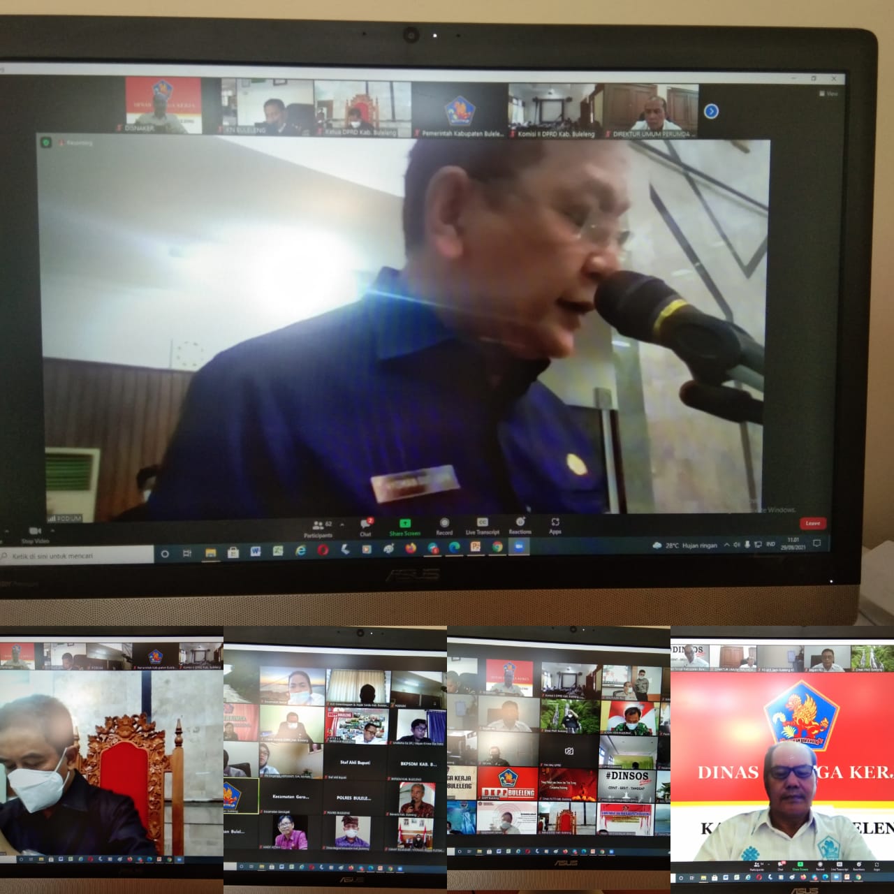 Rabu (29/9) Dinas Tenaga Kerja Kab. Buleleng yang diwakili oleh Sekretaris, mengikuti zoom meeting dalam rangka Rapat Paripurna Penyampaian Jawaban Bupati Buleleng atas Pemandangan umum fraksi DPRD Kab. Buleleng tentang Ranperda Perubahan APBD Tahun Anggaran 2021. Sidang dipimpin.oleh Ketua DPRD Kab. Buleleng, dan Jawaban Bupati disampaikan oleh Bupati Buleleng yang diwakili oleh Wakil Bupati Buleleng. Ucapan terima kasih disampaikan oleh Bupati Buleleng kepada fraksi DPRD telah menyampaikan pemandangan umum terkait Ranperda Perubahan Anggaran Tahun 2021. Bupati Buleleng menyampaikan bahwa RPJMD tidak bisa dilakukan karena situasi pandemi covid 19 disamping itu sisa masa jabatan Bupati kurang dari 3 tahun.