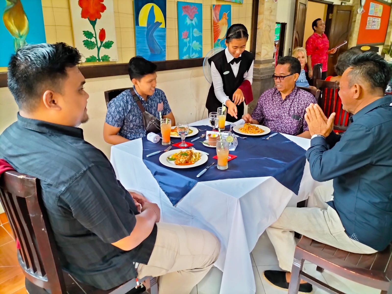 Kepala Bidang Pelatihan dan Produktivitas Tenaga Kerja I Made Sadipa, SH menghadiri kegiatan Evaluasi Praktek Akhir Simulasi Hotel dan Restoran sekaligus mewakili Kepala Dinas Tenaga Kerja Drs. Komang Sumertajaya bertempat di LPKS Aura Sukma Insani pada hari Minggu, 12 Maret 2023,Yang pada kesempatan ini, Kepala Bidang Pelatihan Dan Produktivitas Tenaga Kerja melihat praktek langsung mahasiswa/mahasiswi LPKS Aura Sukma Insani cara menyambut tamu (receptionis), menyajikan makanan (service), meproduksi makanan (product). Pada kegiatan Simulasi ini, menampilkan 17 Orang pada Bidang Perhotelan (receptionis,service,product,dan housekepping).