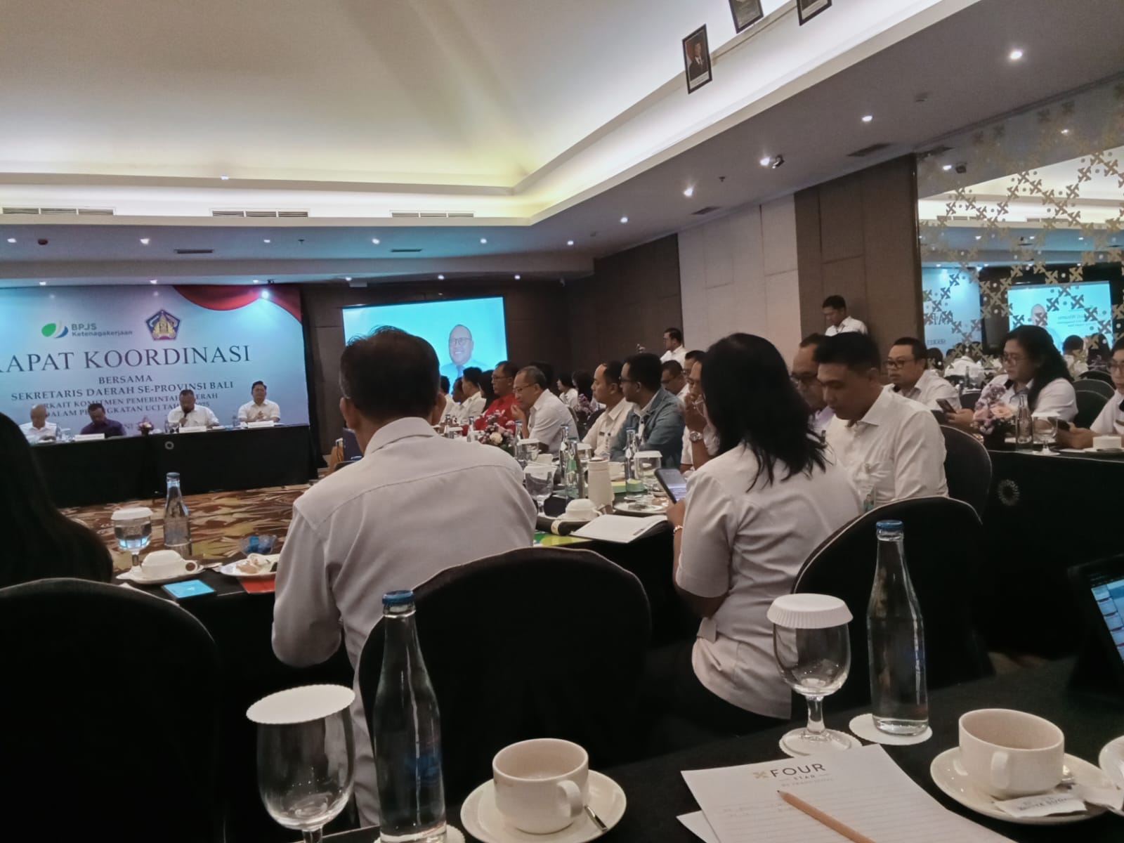 Rabu, 4 Juni 2025 Dinas Tenaga Kerja yang diwakili oleh PLT. Kepala Bidang Data dan Informasi Hubungan Industrial, Ni Wayan Sri Utari, SE. Mengikuti Rapat Koordinasi bersama Sekretaris Daerah, Kepala Dinas Tenaga Kerja, Kepala Badan Pengelola Keuangan dan Aset Daerah serta Kepala Badan Perencanaan Pembangunan Daerah Kabupaten/Kota se-Bali, tentang Universal Coverage Jaminan Sosial Ketenagakerjaan Tahun 2025 yang merupakan salah satu prioritas pada Program Strategis Nasional.