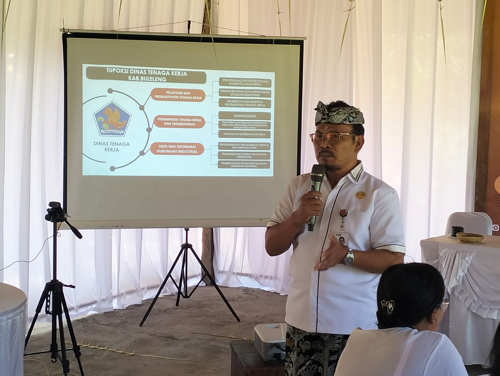 Dalam kesempatan tersebut, Plt. Kepala Dinas Tenaga Kerja Kabupaten Buleleng memberikan sambutan sekaligus menjadi narasumber. Dalam sambutannya, beliau menyampaikan bahwa Pemerintah Kabupaten Buleleng terus berupaya maksimal mengikuti seluruh regulasi dan kebijakan dalam bidang ketenagakerjaan, terutama terkait pekerja migran Indonesia. Minat masyarakat Buleleng untuk bekerja ke luar negeri sangat tinggi, dan Pemerintah Daerah dengan dukungan para kepala desa terus berkomitmen untuk memastikan proses penempatan berjalan sesuai prosedur.