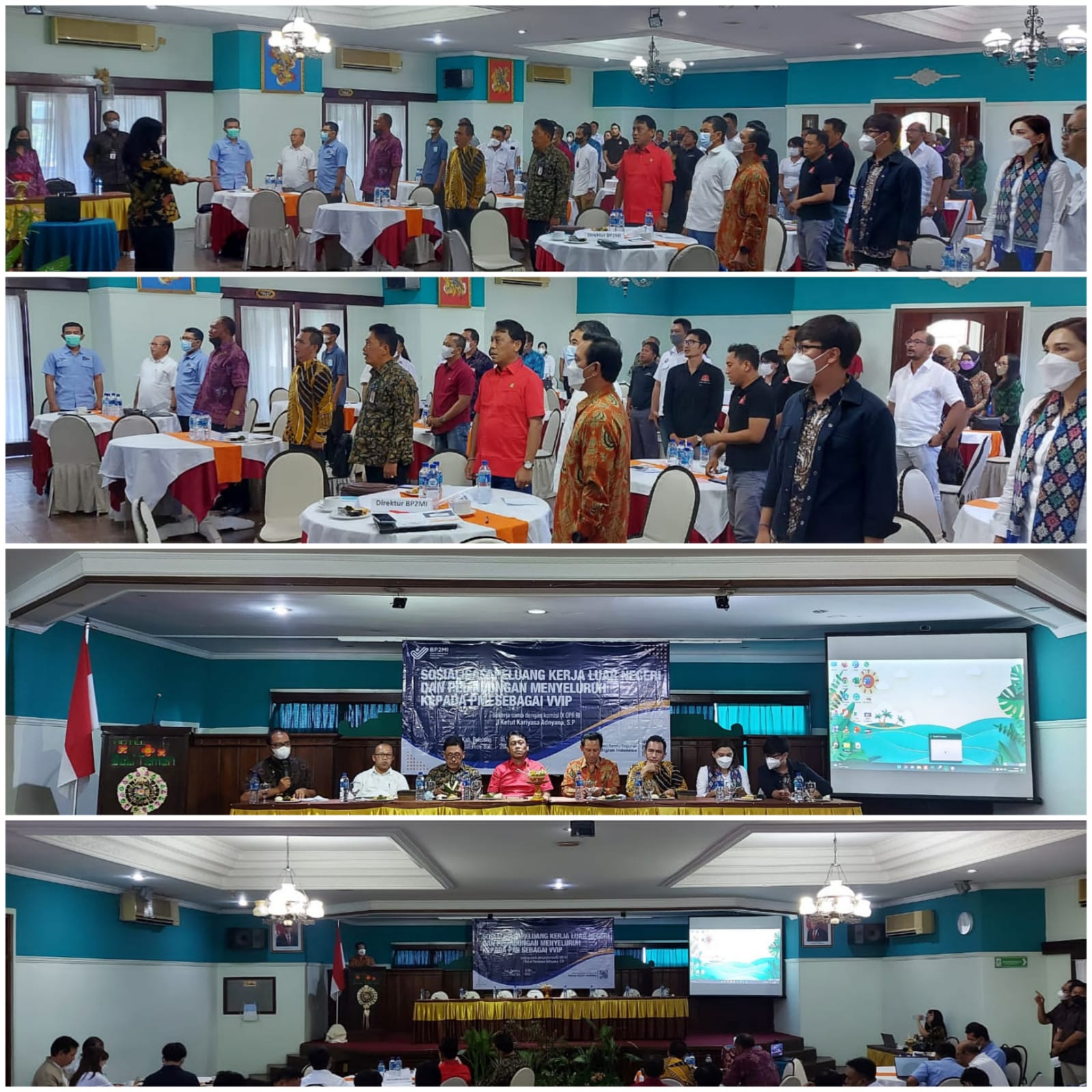 Dinas Tenaga Kerja Kabupaten Buleleng menghadiri Kegiatan Sosialisasi Peluang Kerja Luar Negeri dan Perlindungan Menyeluruh Kepada PMI Sebagai VVIP yang diselenggarakan di Hotel Bali Taman Resort & Spa pada hari Senin, 16 Mei 2022,Kegiatan ini dihadiri langsung oleh Kepala Dinas Tenaga Kerja Kabupaten Buleleng Drs. Komang Sumertajaya di dampingi Sekretaris Dinas Tenaga Kerja Kabupaten Buleleng Nyoman Suarjana, S.Pd, M.Pd., Kepala Bidang Penempatan Tenaga Kerja dan Transmigrasi Made Kunayanti, SE., Pengantar Kerja Ahli Muda Nyoman Arsiani, S.Sos. Kegiatan Sosialisasi ini dibuka langsung oleh Komisi IX DPR RI I Ketut Karyasa Adnyana, S.P.