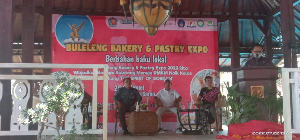 Pada hari ini, jumat 22 juli 2022 Kepala Bidang Data dan Informasi HI mewakili Kepala Disnaker Kab Buleleng menghadiri undangan penutupan pelatihan kewirausahaan pengelolaan camilan berbahan baku lokal bagi pelaku UMKM dirangkaikan dengan Buleleng Bakry dan pastry expo tahun 2022, bertempat di Hotel Puri Saron Desa Pemaron, acara ditutup oleh Kepala Dinas Perdagangan dan Koperasi Kab Buleleng mewakili Bapak Bupati Buleleng.