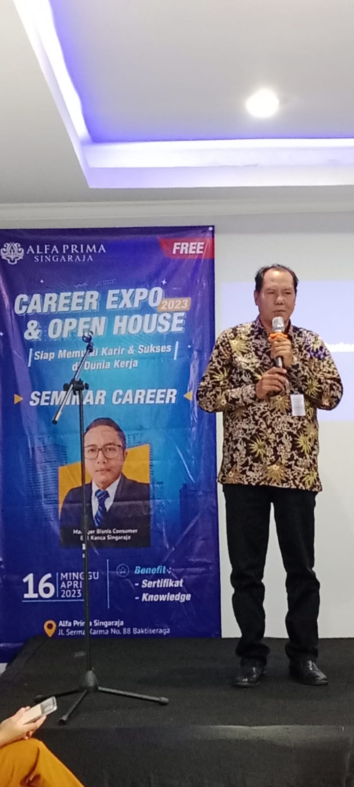 Minggu, 16 April 2023.Sekretaris Dinas Tenaga Kerja Kab. Buleleng Nyoman Suarjana, S.Pd.,M.Pd bersama Kabid Lattas I Made Sadipa, SH menghadiri sekaligus membuka secara resmi kegiatan seminar karir di LPK Alfa Prima.