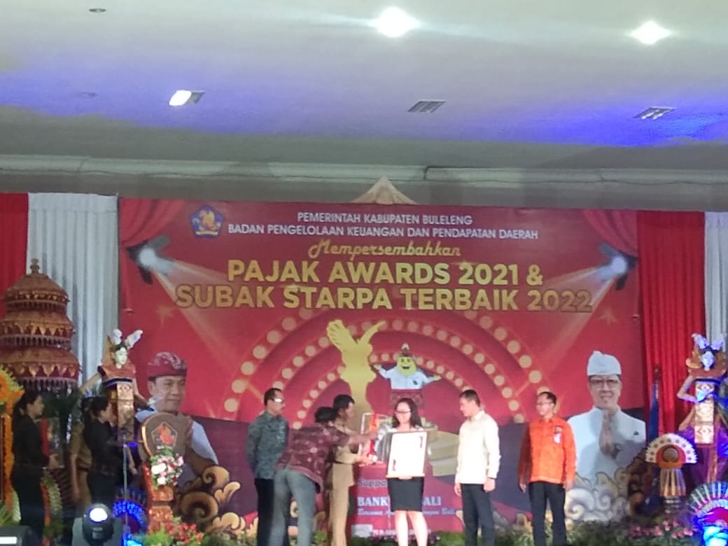 Acara ini dilaksanakan oleh BPKPD Kab. Buleleng. Dalam laporannya Kepala BPKPD menyampaikan bahwa pajak daerah merupakan sumber pendapatan utama untuk pembangunan daerah buleleng. Diberikan 59 piagam penghargaan kepada Perusahaan, Subak. Diberikan juga 34 Penghargaan kepada wajib pajak terbaik pribadi PBB P2. Dilanjutkan dengan penyerahan penghargaan kepada perusahaan, subak dan wajib pajak pribadi dalam ketepatan waktu membayar pajak dan tercepat, Desa Sadar taat bayar pajak, yang diserahlan oleh Pj. Bupati Buleleng didampingi Ketua DPRD Kab. Buleleng, Sekda Buleleng dan Kepala BPKPD Kab. Buleleng