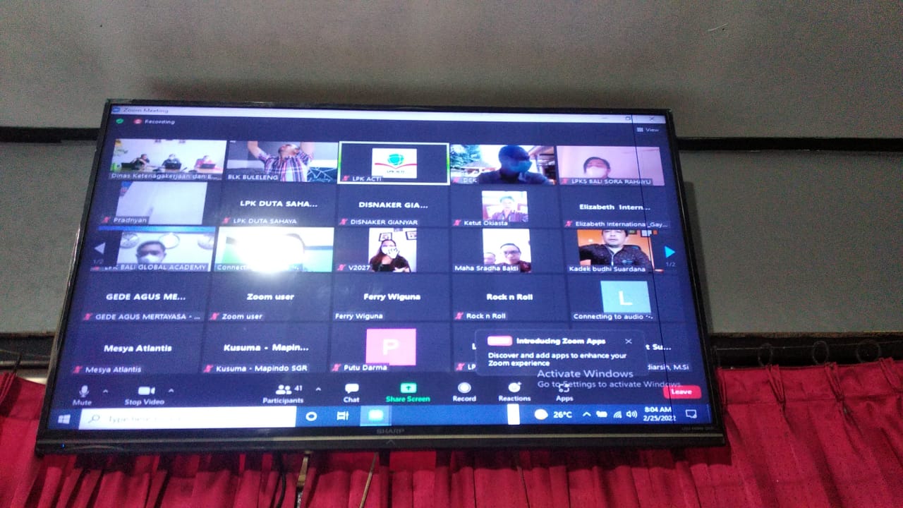 Jumat 25 februari 2022. I Nym Ardika Widana SPd ( Koordinator Instruktur)mewakili UPTD BLK Buleleng mengikuti undangan rapat dari Dinas Tenaga Kerja & ESDM Prov Bali dan KA- LPK Bali melalui aplikasi Zoom Meeting terkait kesiapan lembaga dalam hal pelaksanaan Akreditasi BLK Buleleng serta tata cara dalam hal pengisian form - form terkait yang berhubungan dengan pelaksanaan akreditasi.Untuk tahun 2022. sesuai yang di usulkan bidang Latas yaitu kejuruan Menjahit yang di ajukan untuk Akreditasi .