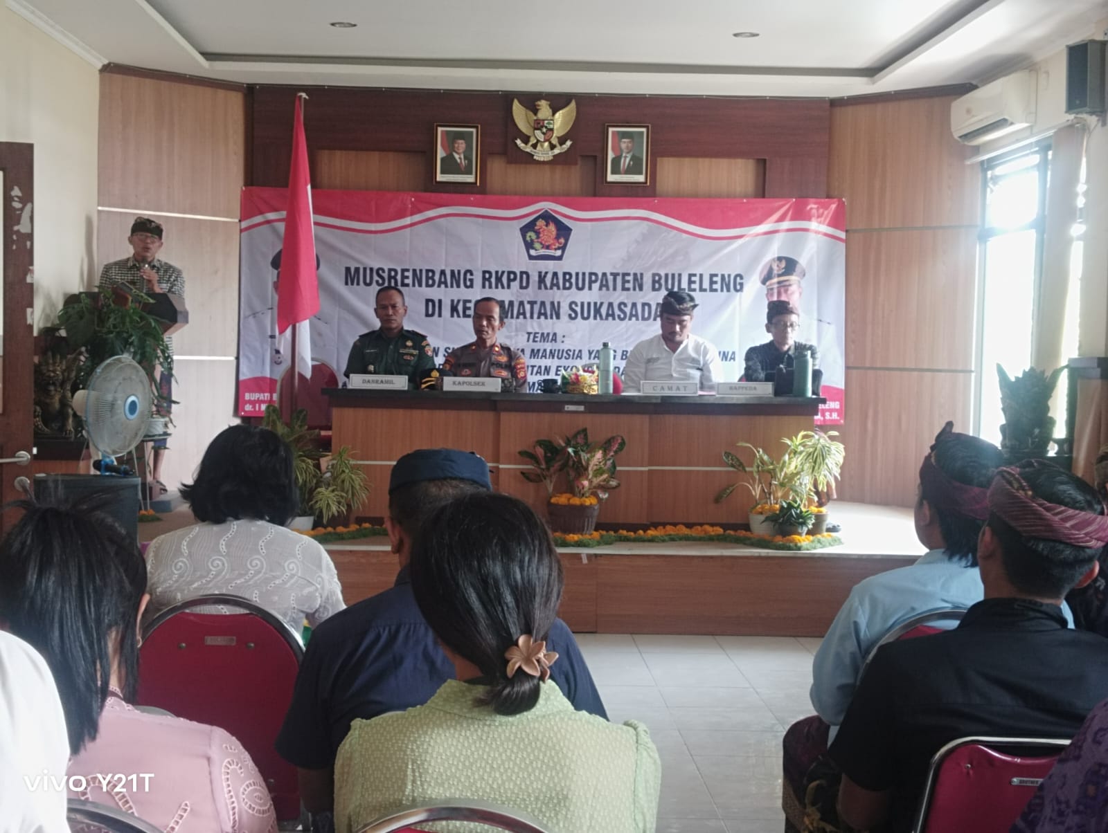 Kegiatan Musrenbang ini dihadiri oleh Camat Sukasada, perwakilan dari Badan Perencanaan Pembangunan Daerah (Bappeda), perwakilan dari Kepolisian Sektor (Kapolsek), serta Komando Rayon Militer (Danramil). Kehadiran berbagai unsur pemerintah dan aparat keamanan tersebut mencerminkan komitmen bersama dalam menyusun rencana pembangunan daerah yang lebih terarah, partisipatif, dan sesuai dengan kebutuhan masyarakat di wilayah Kecamatan Sukasada.