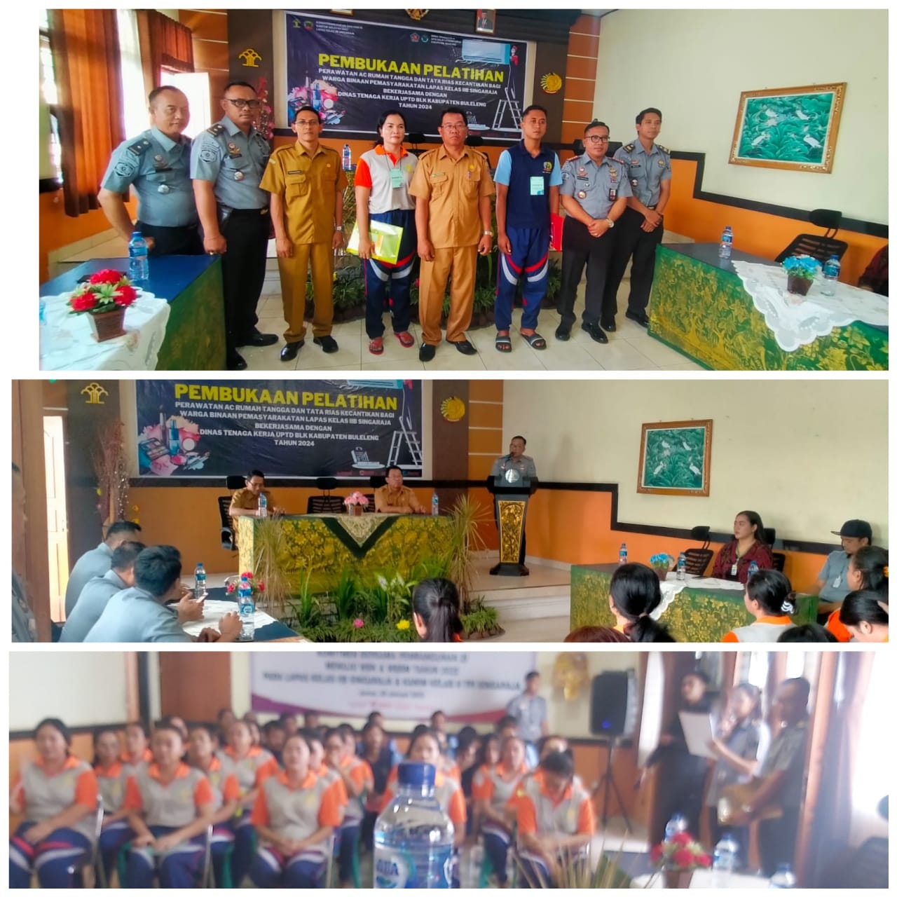 Senin, 4 Maret 2024, bertempat di Aula Lapas Kelas IIB Singaraja, mewakili Kepala Dinas Tenaga Kerja Kabupaten Buleleng, Kepala Bidang Pelatihan dan Productivitas I Made Sadipa, S.H, bersama Plt. Kepala UPTD BLK, Gede Suka Budiaman, S.P., M.A.P. menghadiri undangan pembukaan pelatihan keterampilan untuk warga binaan Lapas.Kegiatan pelatihan tersebut adalah sebagai bentuk kerjasama antara Lapas Kelas IIB Singaraja dengan UPTD BLK Disnaker Kabupaten Buleleng. Tahun Anggaran 2024 ini, dilaksanakan 2 program pelatihan yaitu pelatihan tata rias kecantikan dan pelatihan perbaikan AC rumah tangga. Kegiatan dibuka oleh Kepala Lapas Kelas IIB Singaraja, I Wayan Putu Sutresna dan diikuti oleh seluruh peserta serta staf Lapas.