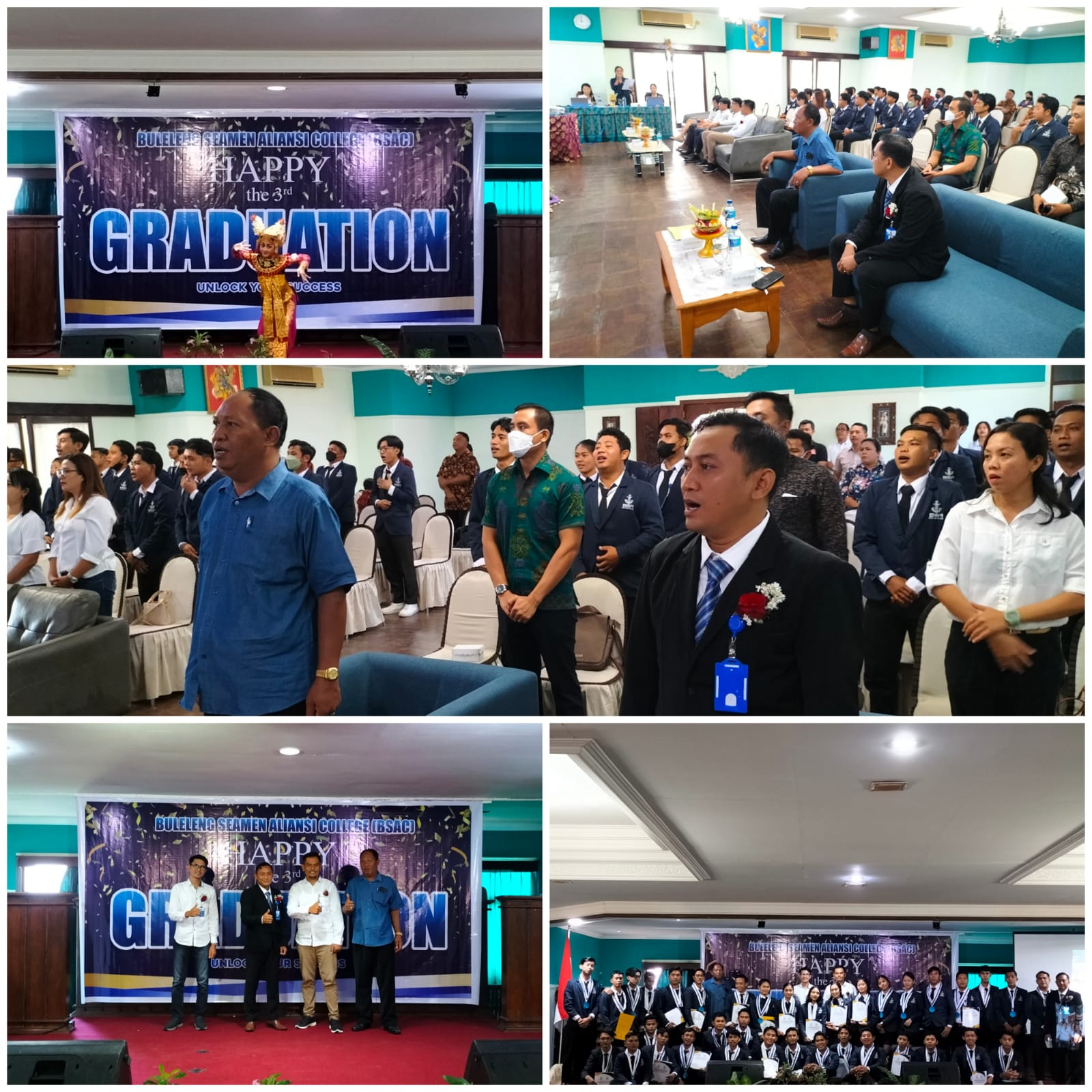Kepala Dinas Tenaga Kerja Kabupaten Buleleng Drs. Komang Sumertajaya menghadiri kegiatan Pelepasan Peserta Didik Baru Angkatan Tiga dan Empat Buleleng Seamen Aliansi College (BSAC) bertempat di Hotel Bali Taman Resort and Spa pada hari Sabtu, 21 Mei 2022. Pelespasan Siswa/Siswi Buleleng Seamen Aliansi College ini diikuti sebanyak 72 Orang Siswa/Siswi BSAC yang terdiri dari Executive Class 51 Orang, Diploma I 21 Orang. Kepala Dinas Tenaga Kerja Kabupaten Buleleng, dalam hal ini memberikan sambutan yang dimana sambutannya memberikan semangat kepada adik-adik sebagi calon devisa Negara, yang sangat besar harapannya bisa berdaya saing di dunia usaha baik di darat maupaun kapal pesiar
