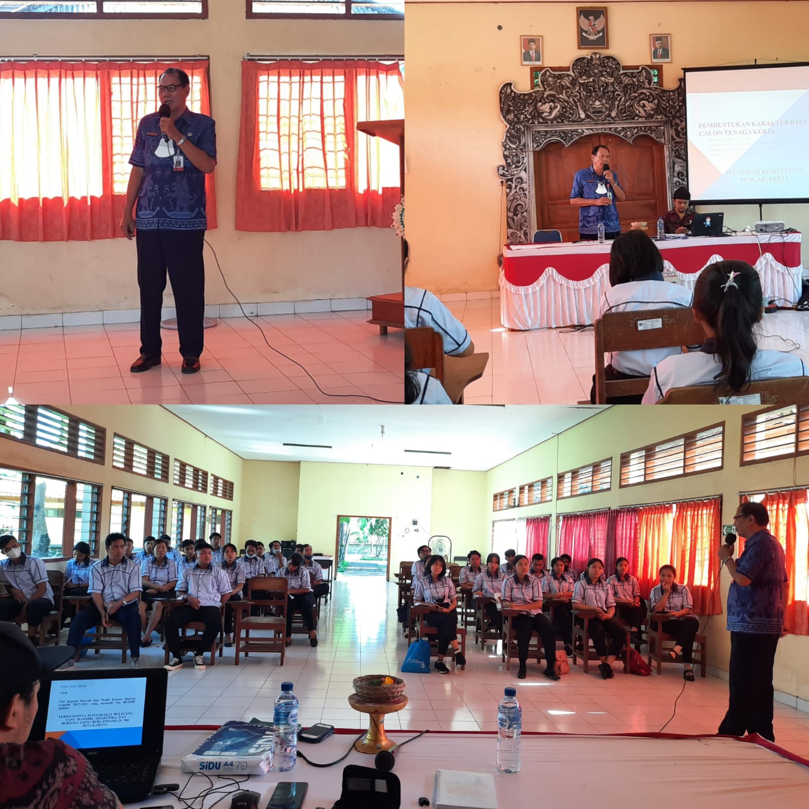 Bertempat di Aula UPTD BLK Kabupaten Buleleng, Sekdisnaker menyampaikan materi mengenai pengetahuan ketenagakerjaan seperti kualifikasi angkatan kerja, sosialiasi kartu AK-1 sebagai syarat calon pencari kerja yang dapat diajukan di Dinas Tenaga Kerja Kabupaten Buleleng serta kesempatan mengasah keterampilan diri melalui pelatihan gratis di UPTD BLK Kabupaten Buleleng.