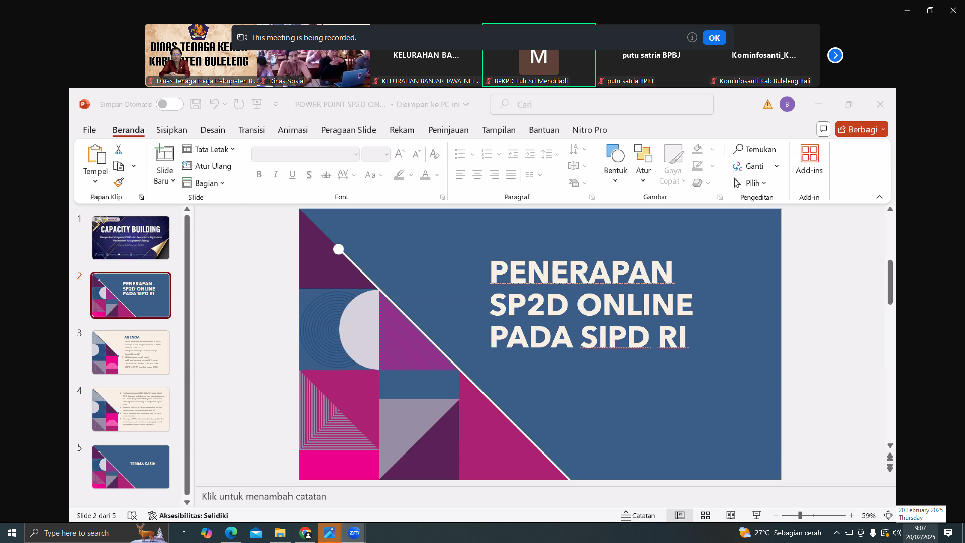 Dinas Tenaga Kerja kabupaten Buleleng yang diwakili kasubag Umum dan keuangan bersama staf oprator sstem keuangan dan perencanaan Disnaker (SIPD) Kamis 20 Pebruari 2025, mengikuti Zoom terkait Peraturan Bupati Nomor 62 Tahun 2024, Tentang Standar Harga Satuan Perjalanan Dinas, Sosialisasi Penerapan Coretax, dan Persiapan Penerapan SP2D Online.