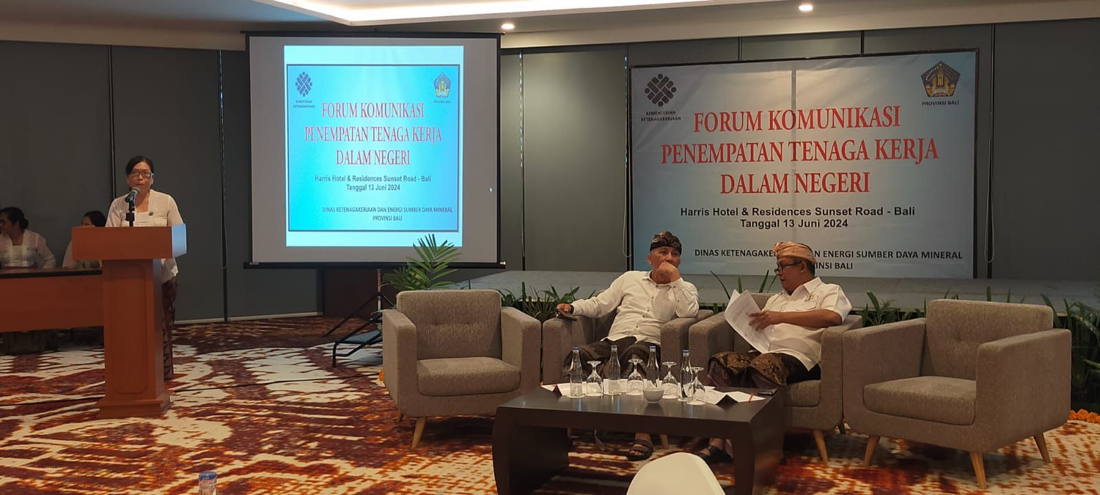 Kamis 13 Juni 2024, Pengantar Kerja Ahli Muda (I Komang Suardana,SH) dan staf (Kadek Ratna Susila Bakti,SE) mengikuti forum komunikasi penempatan tenaga kerja dalam negeri bertempat di Harris Hotel & Residence Sunset Road-Bali yang diselenggarakan Dinas Ketenagakerjaan dan ESDM Prov. Bali. Acara ini dibuka oleh Bp. Kadisnaker dan ESDM prov Bali dengan mengundang 3 orang narasumber, yaitu Ketua Kamar Dagang dan Industri Prov. Bali, Bappeda Prov. Bali dan BPS Prov. Bali. Peserta forum komunikasi penempatan tenaga kerja dalam negeri ini terdiri dari Para Pengantar Kerja Kab/Kota se Provinsi Bali, BKK, LPK dan Pelaku DUDI berjumlah 75 orang. Dalam sambutan yang disampaikan oleh Bp. Kadisnaker dan ESDM Prov. Bali berharap dengan diadakannya acara forum komunikasi ini, semua stakeholder terkait dapat bersinergi dalam melaksanakan penempatan tenaga kerja dalam negeri dan tentunya dapat mengurangi angka pengangguran khusunya di Provinsi Bali.