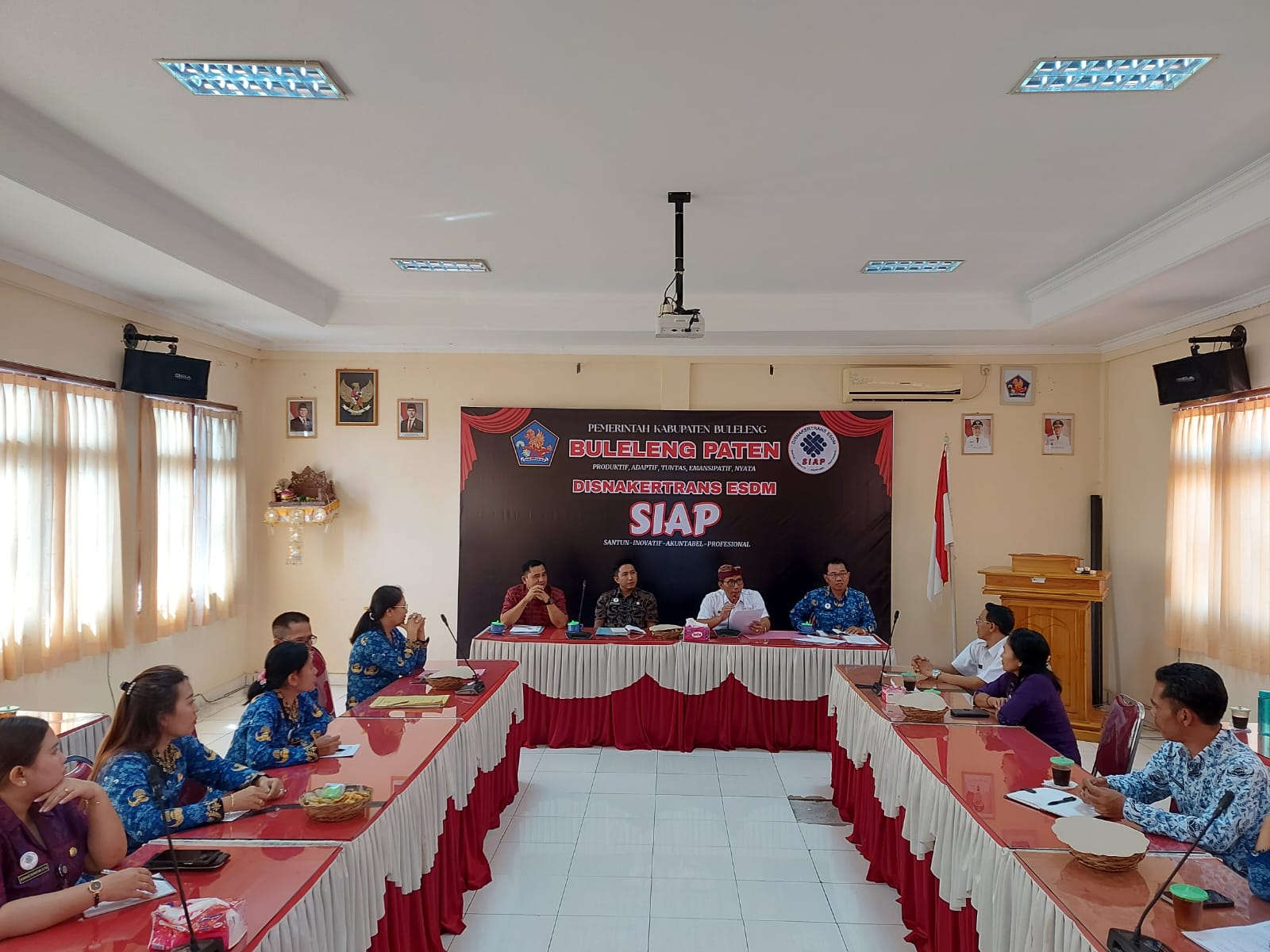 Pada hari ini, Selasa (28/10/2025), bertempat di Ruang Rapat Dinas Tenaga Kerja Kabupaten Buleleng, telah dilaksanakan Rapat Staf dalam rangka evaluasi perencanaan sekaligus persiapan pelaksanaan program tahun 2026. Rapat dibuka dan dipimpin langsung oleh Kepala Dinas Tenaga Kerja Kabupaten Buleleng, Putu Arimbawa, S.E., M.Si., yang dihadiri oleh para Kepala Bidang serta seluruh pegawai di lingkungan Dinas Tenaga Kerja Kabupaten Buleleng.