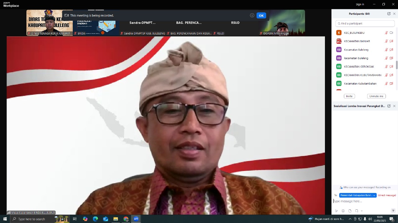 Kamis, 22 Mei 2025, Dinas Tenaga Kerja Kabupaten Buleleng yang di wakili Oprator Website mengikuti Zoom Meting Sosialisasi Lomba Inovasi Perangkat