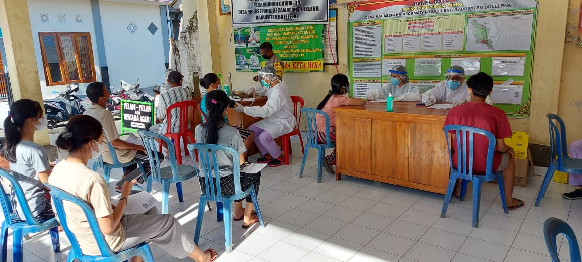 Pada hari Kamis (06/05/2021) pukul 08.00 Wita, telah dilaksanakan vaksinasi Covid-19 tahap II dari Rumah Sakit Giri Emas di Desa Nagasepaha yang bertempat di Balai Masyarakat Desa Nagasepaha. Kepala Dinas Tenaga Kerja Kabupaten Buleleng, Ni Made Dwi Priyanti Putri Koriawan, S.E, hadir langsung untuk memonitoring pelaksanaan vaksinasi tahap II ini. Hadir juga Kepala Bidang Pelatihan dan Produktivitas, Made Sadipa, S.H, Kepala Seksi Pengembangan Kesempatan Perluasan Kerja dan Pengendalian Penggunaan TKA, I Komang Suardana, S.H, para staff, beserta aparat desa, Babinsa, dan Babinkamtibmas yang membantu langsung pelaksanaan vaksinasi tahap II agar kegiatan ini dapat berjalan dengan lancar dan sesuai dengan target. Setalah pemberian vaksin Covid-19, tidak serta merta kita dapat lalai dengan tidak menerapkan protokol kesehatan yaitu 3 M (Memakasi masker, Mencuci tangan dan Menjaga Jarak). Protokol kesehatan tetap wajib dilaksanakan dan didukung dengan pelaksanaan Vaksinasi Covid-19.