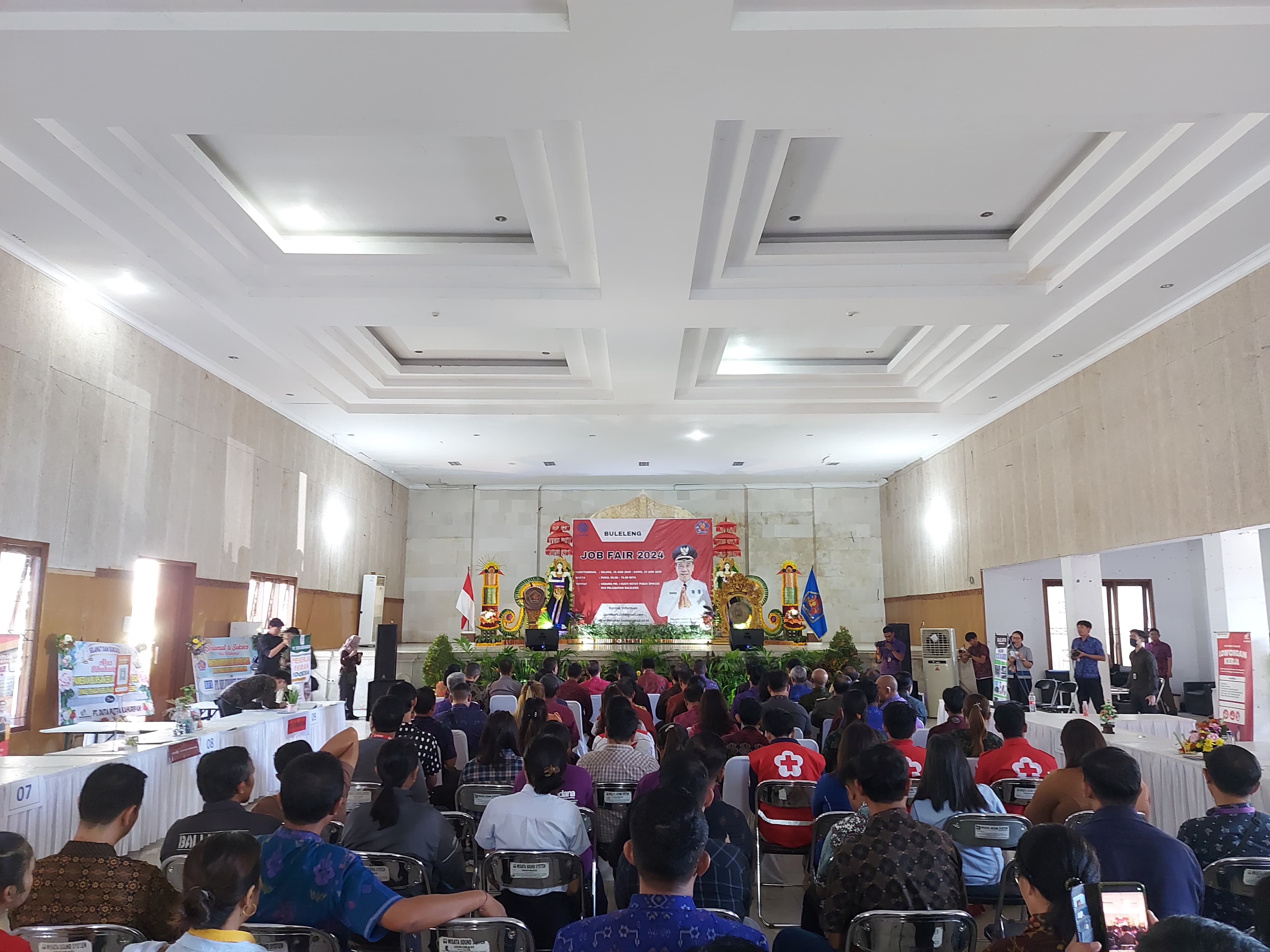 Bersinergi dengan sekitar 21 (dua puluh satu) perusahaan skala lokal dan nasional, Pemerntah Kabupaten Bueleleng Melalui Dinas Tenaga Kerja Kembali menggelar Pameran Bursa Kerja (Job Fair) Kabupaten Buleleng Tahun 2024, di Gedung Mr. I Gusti Ketut Pudja (IMACO) eks. Pelabuhan Buleleng selama 3 (tiga) hari mulai tanggal 25 Juni s/d 27 Juni 2024. dengan tujuan penempatan tenaga kerja dalam negeri dan ke luar negeri, dari berbagai sektor lapangan usaha seperti perbankan, pembiayaan, retail, perdagangan, kapal pesiar, dan lain-lain, dengan jumlah total lowongan sebanyak 1.919 orang.