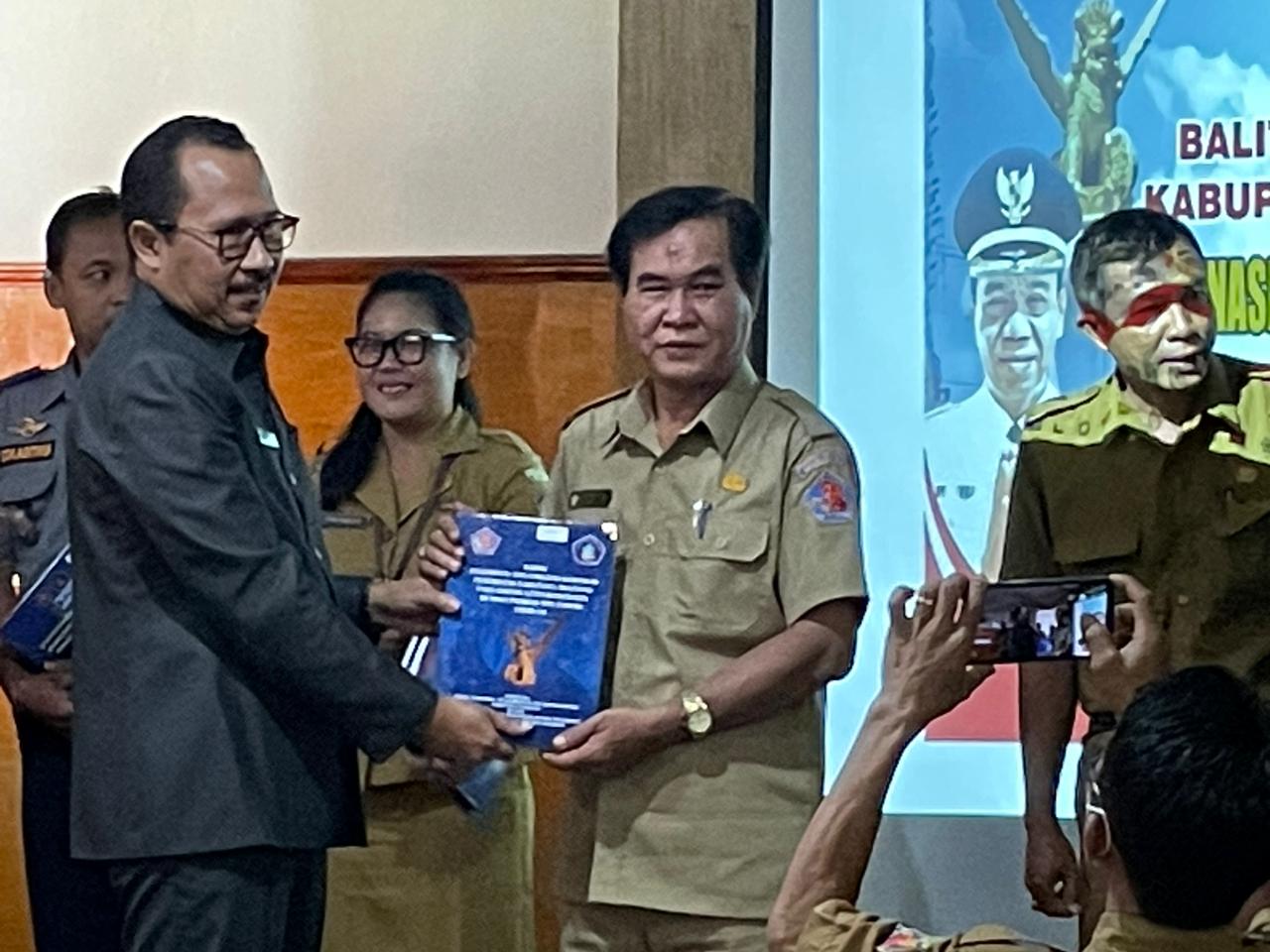 Penyerahan dilaksanakan oleh Bapak Sekda Kab Buleleng. Selanjutnya dalam Arahan Bapak Sekda mengatakan agar dengan selesainya kajian ini agar menjadi pegangan dalam mengambil keputusan dalam menyusun program kegiatan bukan menjadi pajangan diperpustakaan.
