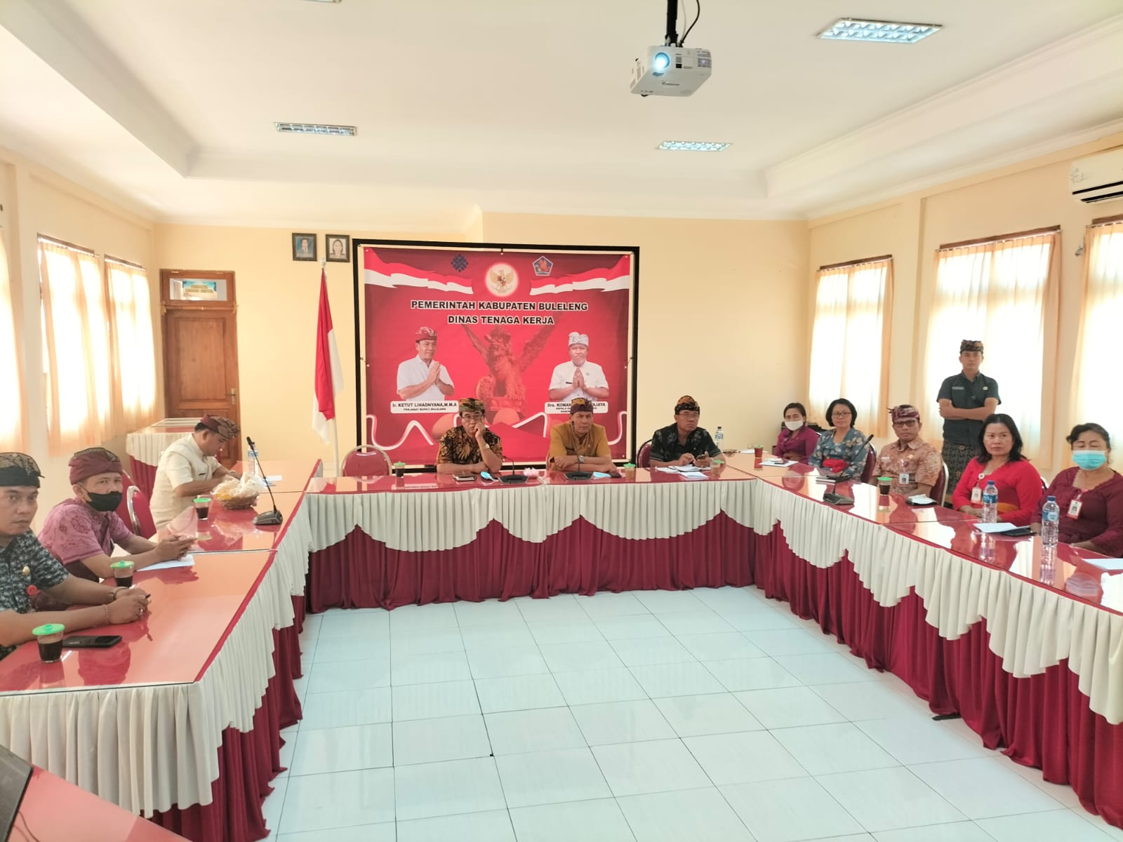 Kamis, 01/09/2022, Dinas Tenaga Kerja kabupaten Buleleng Mengikuti Rapat koordinasi SKPD dan Pemerintahan secara virtual melalui Zoom Meting yang dilaksanakan Pemerintah kabupaten Buleleng dari Ruang Rapat Unit Empat Sekda Kabupaten Buleleng, Rapat dibuka langsung oleh pejabat Bupati Buleleng Ir,Ketut Lihadnyana,M.M.A didampingi Sekretaris Daerah kabupaten Buleleng Drs Gede Suyasa,M.Pd, Sementara dari ruang rapat Disnaker diikuti oleh Sekretaris Disnaker Nyoman Suarjana,S.Pd,M.Pd,Kepala Bidang, kasubag umum dan keuangan ,Perencana, Pungsional, Mediator ,Pengantar kerja,lingkup Disnaker,dalam arahanya pejabat Bupati Buleleng menyampaikan beberapa hal diantaranya terkait tertib pengelolaan sumber daya manusia,tata kelola kerapian administrasi kepegawaian, serta hal hal lain terkait program pemerintahan.