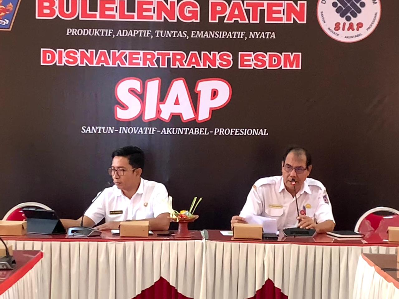 Mewakili Kadis Naker, Sekretaris Dinas Tenaga Kerja Kabupaten Buleleng, Nyoman Suarjana, S.Pd., M.Pd., besama kabid Data dan Hubungan industrial, membuka rapat koordinasi pelaksanaan Kesehatan dan Keselamatan Kerja (K3) yang berlangsung di Aula Dinas Tenaga Kerja Kabupaten Buleleng pada Rabu, 28 Januari 2026.