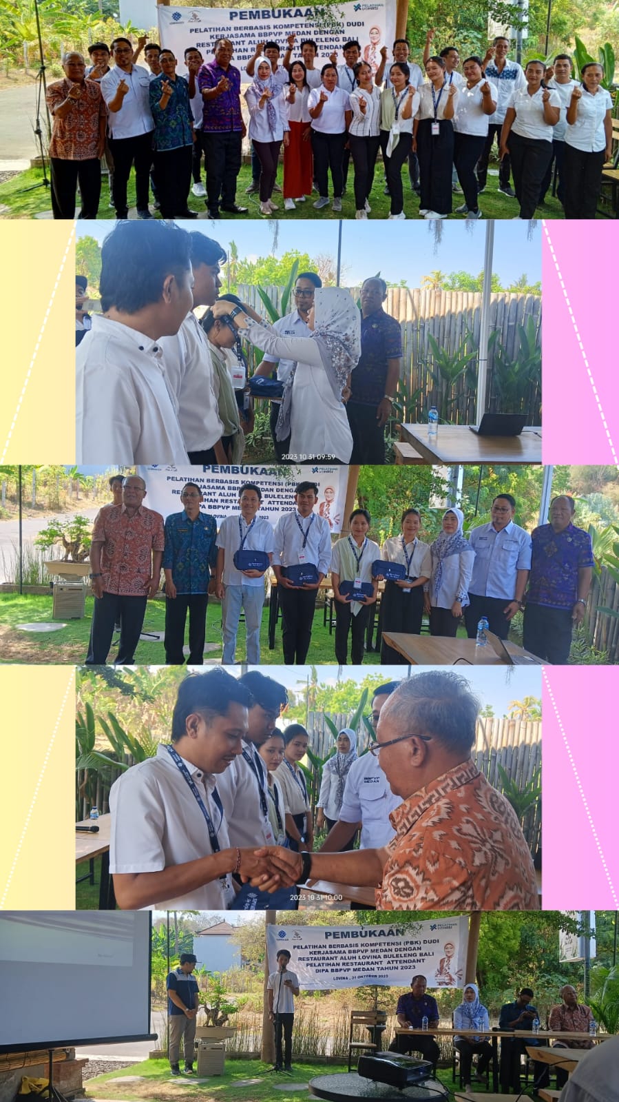 Pemerintah Kabupaten Buleleng, yang dikirimkan oleh Disnaker mengucapkan terima kasih atas kerja sama PBK BBPVP Medan dengan Aluh Resto, semoga kedepannya lebih baik dan ditingkatkan kembali.