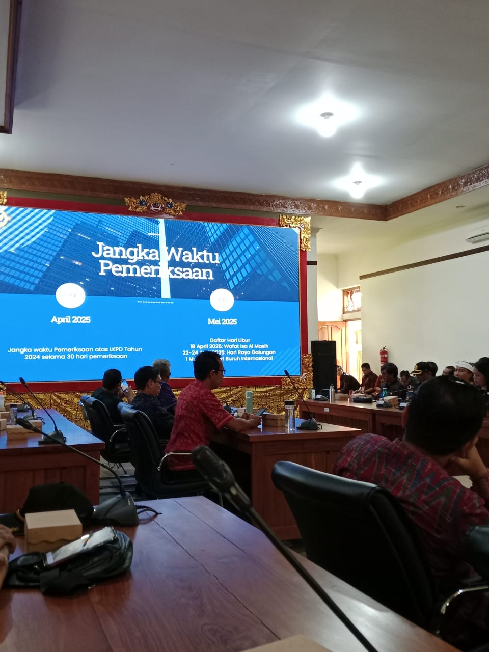 Bertempat di Rumah Jabatan Bupati Buleleng pada hari ini jumat tgl 11 April 2025 Kabid Lattas mewakili Bapak Plt Kadis Naker menghadiri kegiatan Entry Meeting BPK RI Perwakilan Bali terkait pemeriksaan terinci atas laporan keuangan pemerintah Kabupaten Buleleng tahun 2024,acara ini hadir langsung Bupati dan wakil Bupati Buleleng Para Asisten, Pimpinan OPD/yang mewakili, Para Camat,Para Kabag Lingkup setda Kab.Buleleng