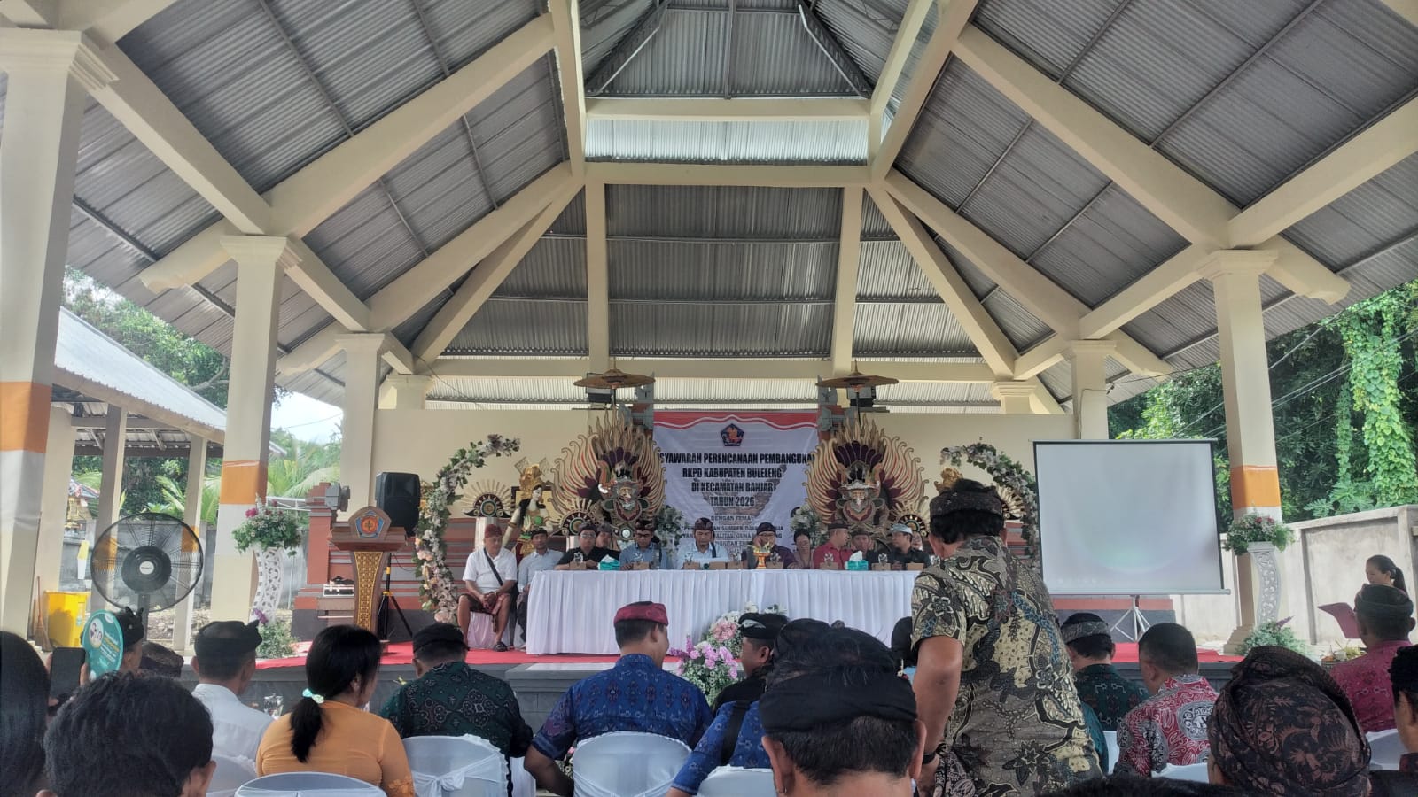 Kegiatan ini turut dihadiri oleh Camat Banjar Putu Widiawan S.Sos, perwakilan Bappeda Kabupaten Buleleng yg kali ini di wakili oleh sekretaris Bapeda Komang Widarma,S.E, perwakilan dari kepolisian dan tentaradan di ikuti oleh 17 desa dengan total 147 usulan yang akan mengerucut berdasarkan skala prioritas kesehatan dan pendidikan yang harus lebih banyak di munculkan .