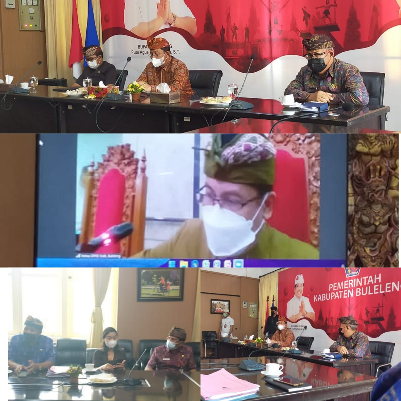 Kepala Dinas Tenaga Kerja Kabupaten Buleleng Drs. Komang Sumertajaya, mengikuti Rapat Paripurna Penyampaian-Penyampaian Pemandangan Umum Fraksi-fraksi DPRD yang dipimpin oleh Wakil Ketua I DPRD Buleleng Ketut Susila Umbara,SH, secara virtual bertempat di Ruang Rapat Lobi Kantor Bupati Buleleng, Kamis (10/2).