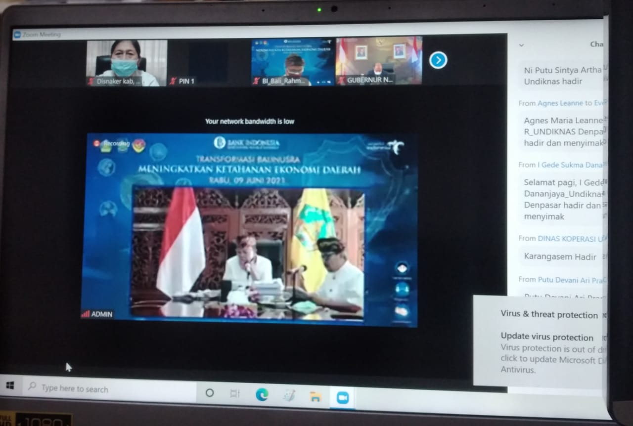 Rabu 9 Juni 2021 Kepala Dinas Tenaga Kerja Kabupaten Buleleng Ni Made Dwi Priyanti Putri K,SE Mengikuti Webinar,dengan Tema,Transpormasi Balinusra Meningkatkan Ketahanan Ekonomi Daerah,Rapat Buka oleh Deputi Gubernur Bank Indonesia Ibu Rosmayati.