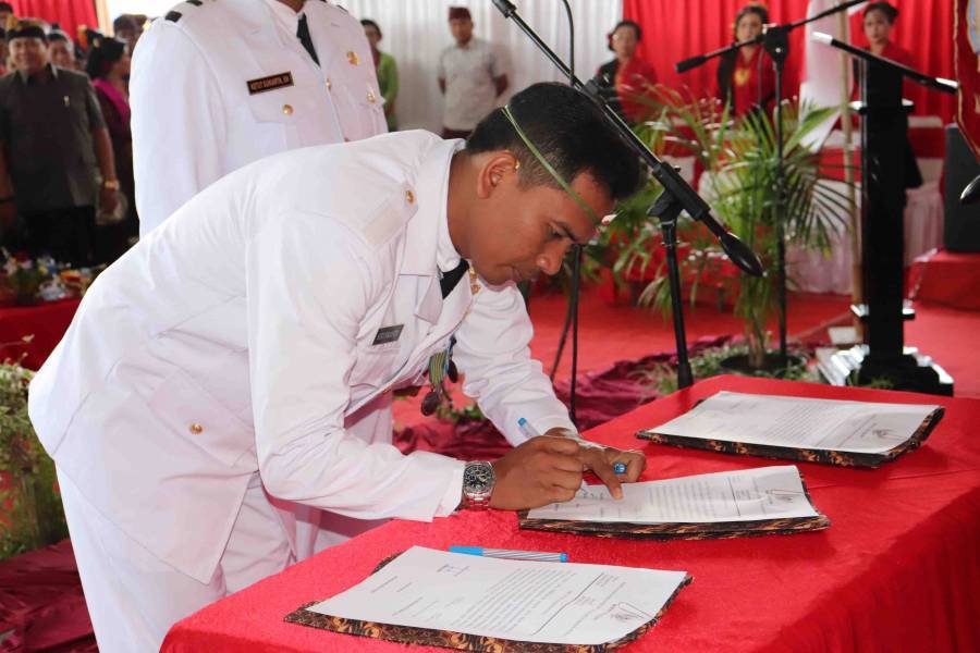 Dalam sambutan Bupati Buleleng yang dibacakan Bapak Wakil, menyampaikan bahwa pemilihan Perbekel Antar Waktu ini merupakan amanat dari Peraturan Perundang-undangan, yang harus dilaksanakan guna mewujudkan proses demokrasi di tingkat desa secara efektif dan efesien. Pemilihan PAW juga sebagai sebuah proses demokrasi politik di tingkat desa, dan harus dimaknai sebagai sebuah proses awal dalam rangka mewujudkan cita-cita pembangunan di desa, yaitu terwujudnya masyarakat desa yang sejahtera, maju, dan mandiri.Seiring dengan perubahan regulasi yang mengatur tentang desa, dimana desa saat ini tidak lagi hanya sebagai obyek pembangunan dari pemerintah, tetapi mempunyai peran penting sebagai subyek pembangunan. Desa juga mempunyai hak dan kewenangan mengatur urusan rumah tangganya. Konsekuensi dari hal itu, desa diberikan dana yang cukup besar untuk dikelola dan dimanfaatkan sebesar-besarnya untuk kepentingan masyarakat desa. Oleh sebab itu pula, Bapak Wakil menegaskan kepada para Perbekel yang telah dilantik agar melanjutkan upaya-upaya untuk mewujudkan kesejahteraan masyarakat Desa.