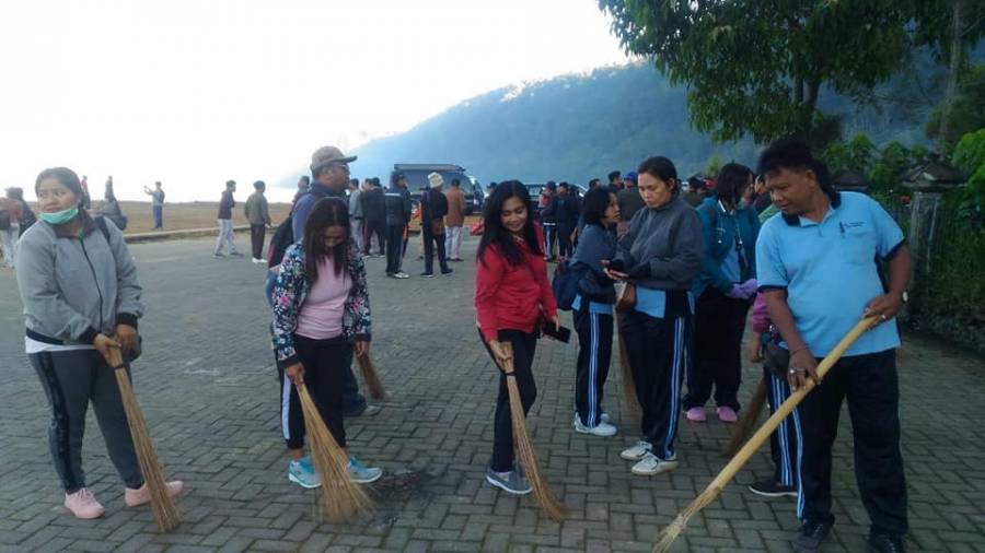 Dinas Tenaga kerja Kabupaten Buleleng yang diikuti langsung kepala Disnaker Ni Made Dwi Priyanti Putri K SE bersama beberapa SKPD lingkup perintah kabupaten Buleleng yang telah mendapat tugas sesuai jadwal melaksanakan gotong royong membersihkan sampah plastik di Areal Danau Buyan Desa Pancasari , Jumat (21/06). Kegiatan ini dalam rangka Jumat bersih dalam menyambut Twin lake Fiestival dan mendukung Gerakan Semesta Berencana Bali Resik Sampah Plastik yang serentak dilaksanakan di Bali.Hadir dalam kesempatan tersebut Bupati Buleleng Yang Menyampaikan Arahanya terkait rencana Penataan kawasan danau Buyan.