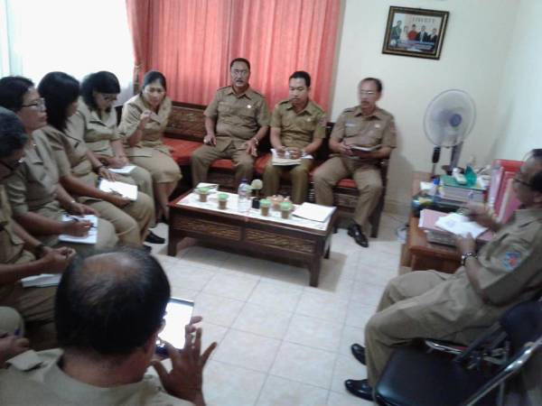 Kepala Dinas Tenaga Kerja Kabupaten Buleleng Ni Made Dwi Priyanti K SE mengadakan rapat diruang kerjanya dengan Kepala Bidang beserta Kepala Seksi maupun PPTK dengan pembahasan berbagai evaluasi kerja dan anggaran maupun kinerja masing-masing staff yang merupakan pendukung kerja yang nantinya dapat dinilai oleh Dinas terkait begitu dikatakan kepala Dinas Tenaga Kerja Kabupaten Buleleng yang memimpin rapat sekaligus memberikan pengarahannya.