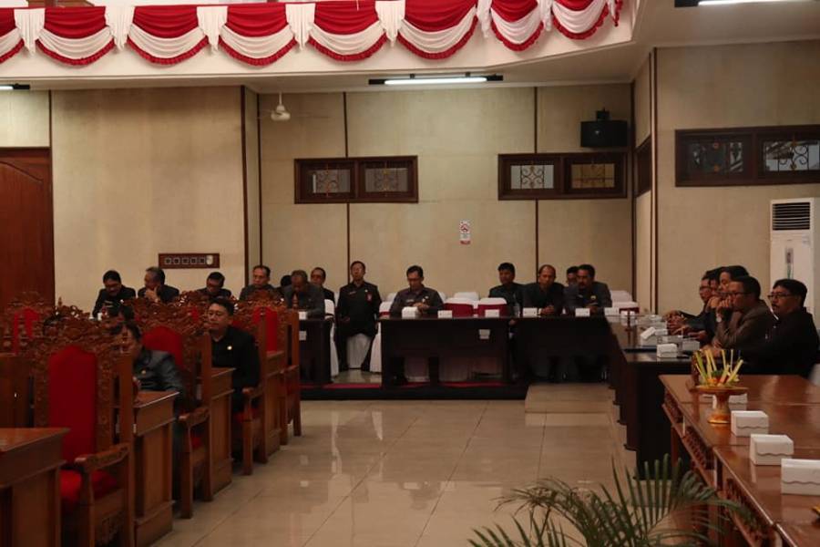 Rancangan Peraturan Daerah Pemerintah Kabupaten (Pemkab) Buleleng tentang perubahan atas Peraturan Daerah Nomor 15 Tahun 2018 tentang Anggaran Pendapatan dan Belanja Daerah Tahun Anggaran 2019 telah mendapat persetujuan Dewan Perwakilan Rakyat Daerah (DPRD) Buleleng.Hal ini terungkap dalam penyampaian langsung Bupati Buleleng, Putu Agus Suradnyana, ST dalam Sidang Paripurna yang digelar di ruang rapat DPRD Buleleng, pada Rabu (14/8).Sidang ini dihadiri oleh Forum Komunikasi Pimpinan Daerah Buleleng, Sekretaris Daerah Buleleng, seluruh Kepala SKPD dan Camat se-Kecamatan Buleleng serta Tim Ahli DPRD dan Tenaga ahli Fraksi DPRD hadir pula kepala DInas Tenaga Kerja Kabupaten Buleleng Ni Made Dwi Pryanti Putri K,SE.