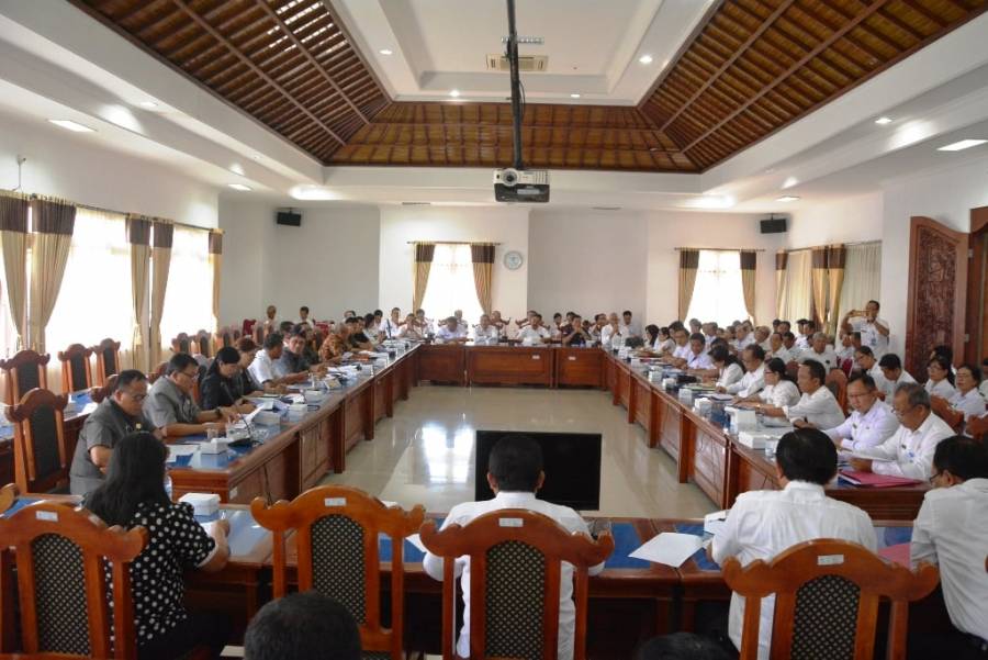 Kepala Dinas Tenaga kerja Kabupaten Buleleng Nimade Dwi Priyanti Putri K,SE,Hadir dalam rapat pembahasan APBD TA 2020 yang di gelar Badan Anggaran DPRD Buleleng dengan pemerintah daerah Kabupaten Buleleng Rabu 13 November 2019. Rapat yang dipimpin oleh Wakil Ketua DPRD Buleleng I Ketut Susila Umbara,SH didampingi Wakil Ketua Dra. Ni Made Putri Nareni dan dihadiri oleh anggota Badan Anggaran, dari esekutif hadir Setda Kabupaten Buleleng Ir. Dewa Ketut Puspaka, MP, serta kepala OPD beserta jajarannya. Dalam pembahasannya Badan Anggaran DPRD Buleleng meminta kepada esekutif agar konsisten dalam pengajuan anggaran yang berkaitan langsung dengan tema pembangunan di Kabupaten Buleleng dan meminta TAPD mengkaji kembali penyesuaian-penyesuaian anggaran dan kegiatan SKPD.