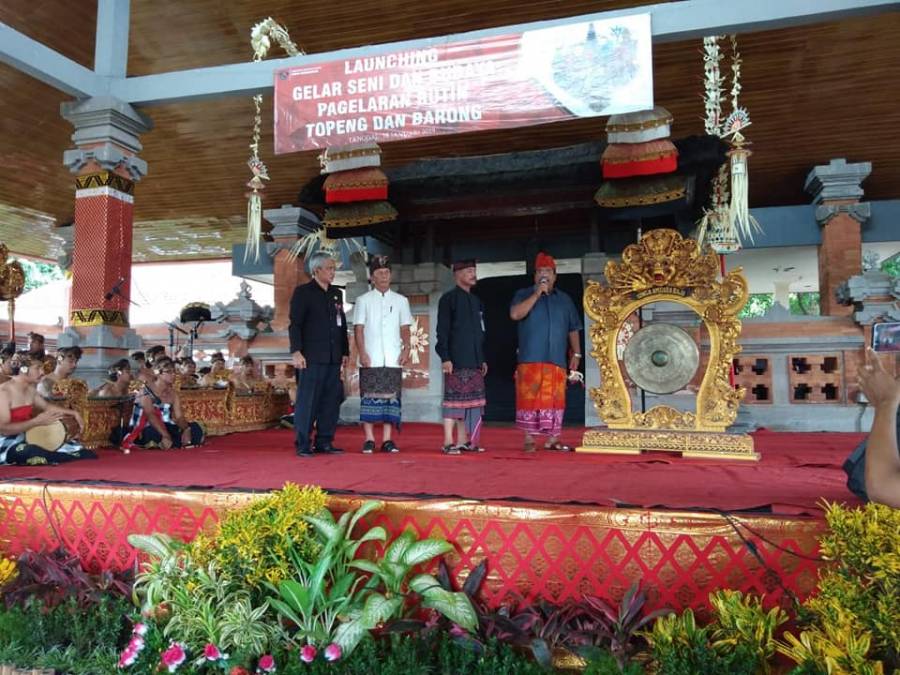 Acara diawali dengan sambutan kepala Dinas Kebudayan kemudian dilanjutkan dengan sambutan Bupati Buleleng yang lanjut membuka acara secara resmi dengan ditandai dengan pemukulan Gong ,dalam sambutanya Bupati buleleng sangat mengapresiasi semangat dinas kebudayan dan para seniman dalam melestarikan seni dan budaya kususnya tari Topeng dan Barong yang ada di kabupaten Buleleng.