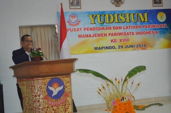 Kepala Bidang Pentanakertrans Dinas Tenaga Kerja Kabupaten Buleleng Nyoman Susila menghadiri acara kegiatan Yudisium Mahasiswa Manajemen Pariwisata Indonesia (Mapindo) Cabang Singaraja Angkatan ke XVIII yang bertempat di aula Kampus Mapindo Singaraja,dihadiri Direktur Mapindo, Dinas Pariwisata,para pengajar,para orang tua siswa maupun para siswa yang akan di yudisium dan para undangan yang terkait.