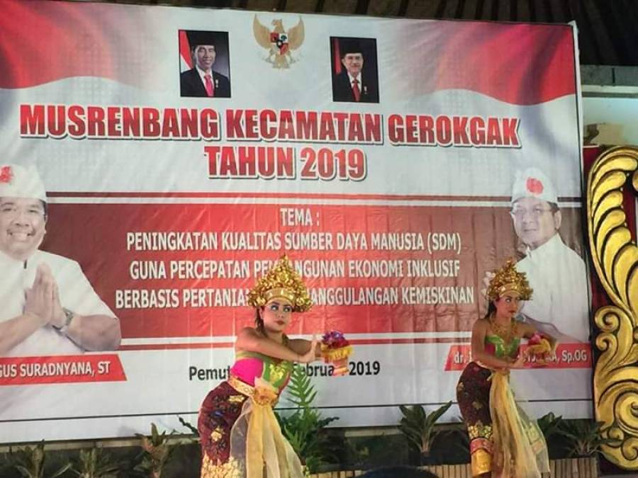 Musrenbang kecamatan Grokgak di laksanakan pada tanggal 15 peb 2019 dengan Tema peningkatan kwalitas SDM guna percepatan pembangunan ekonpmi inklusif berbasis pertanian dan penanggulangan kemiskinan.acara di awali dengan laporan camat Gerokgak yg memgharapkan adanya bantuan pelatihan dan sarpras untuk para petani.acara di buka oleh kepala Bappeda Litbang kabupaten Buleleng sambutannya mengatakan bahwa musrenbang kec.mrupakan penjaringan usulan daerah yg akan di sinkronkan dg rencana pmbangunan daerah.acara dihadiri oleh SKP,DPR Kab,Perwakilan Dsa ketua tim pkk.