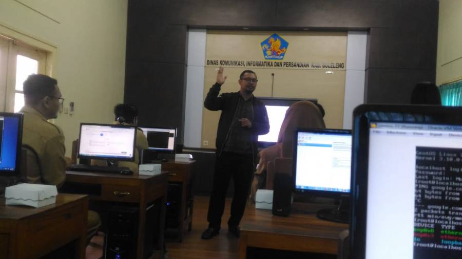 Dinas Tenaga Kerja Kabupaten Buleleng yang di walkili staf Teknis dan oprator website Wyn Gede Suardana Mengikuti pelatihan teknis pengeloaan server berbasis Linux dalam rangka meningkatkan kemampuan pengelolaan server bagi Tenaga Teknis SKPD yang diselenggarakan Dinas komonikasi ,imformatika dan persandian kabupaten Buleleng 16 s/d 17 Septemner 2019 bertempat di Ruang Lab Dinas Komimfosandi Kabupaten Buleleng.di ikuti perwakilan Tenaga teknis masing masing SKPD sesuai jadwal yang telah di tentukan,materi pengenalan server berbasis Linux, jaringan dan back up data dengan nara sumber dan instruktur dari primakara denpasar I Gd Krisna Juliharta MT.