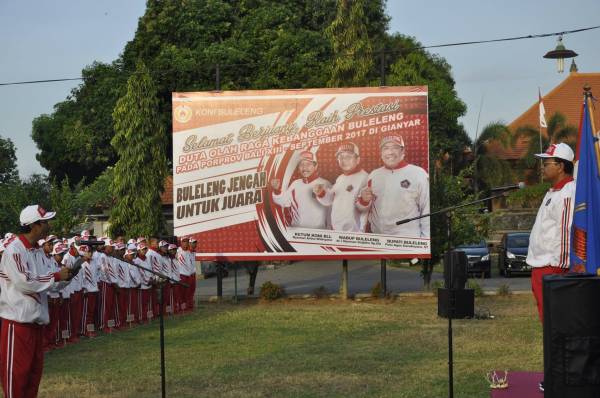 Dalam kesempatan itu Kabupaten Buleleng resmi melepas 34 Kontingen Buleleng untuk berlaga di Propinsi Bli ke XIII untuk memajukan Dearah Buleleng yang langsung di lepas oleh Wakil Bupati Buleleng dengan himbauan agar menjaga sportivitas dan tidak mudah menyerah sebelum wasit memutuskan kalah harus tetap semangat,jengah untuk juara agar Buleleng menjadi terdepan dan berprestasi sesuai bidangnya.Selain itu juga diungkapkan bahwa masyarakat Buleleng harus ikut mendukung demi nama Buleleng yang kita cintai ini.