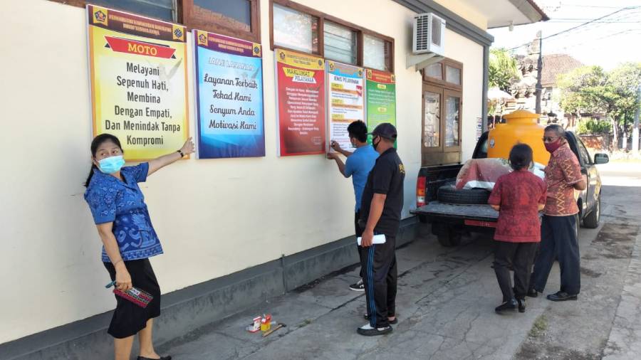 Selasa 29 September 2020 Dalam rangka evaluasi peningkatan kualitas pelayanan publik dan penerapan budaya kerja sesuai dengan Perbup No 62 tahun 2019 pada perangkat daerah sebagai implementasi undang undang- undang Nomor 25 Tahun 2009 tentang Pelayanan Publik di Lingkungan Pemerintah Daerah Kabupaten Buleleng Dinas Tenaga kerja terus berbenah dengan melakukan peningkatan kwalitas pelayanan hal ini terlihat dengan dilakukanya pemasangan kelengkapan imformasi berupa barner-barner dan petunjuk pelayanan imformasi untuk memudahkan masyrakat dalam memperoleh imformasi pelayanan yang ada di kantor Dinas Tenaga kerja Kabupaten Buleleng kegiatan ini di pantau langsung oleh kepala Dinas Tenaga Kerja Kabupaten Buleleng Ni Made Dwi Priyanti Putri K, SE bersama Sekretaris Disnaker Dewa Putu Susrama S.Sos
