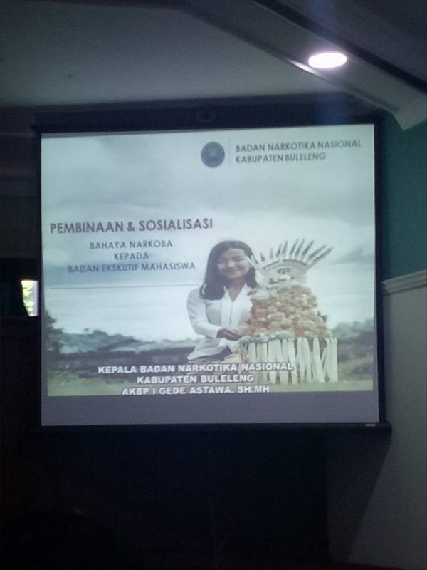 Dalam rangka pelaksanaan kegiatan pembinaan dan sosialisasi bahaya narkoba di Kabupaten Buleleng,maka Dinas Tenaga Kerja Kabupaten Buleleng yang diwakili 3 (tiga) orang Tenaga Kontrak untuk menghadiri pembinaan dan sosialisasi bahaya narkoba kepada badan ekskutif mahasiswa bertempat di Hotel Bali Taman Resort & SPA Jalan Singaraja -Seririt,yang dihadiri juga seluruh SPD maupun undangan lainnya.sebagai narasumber dihadirkan dari BNNK Buleleng I Gede Astawa SH,MH.