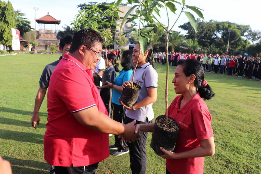Pemerintah Kabupaten (Pemkab) Buleleng melalui Dinas Pertanian Buleleng membagikan 1000 bibit pohon mangga amplem sari serta 2000 bibit durian asli Bestala, Kecamatan Seririt, serangkaian Apel Krida , di Taman Kota Singaraja, Jum'at (6/12). Ribuan bibit tersebut dibagikan kepada masyarakat Buleleng dan juga kepada SKPD di Lingkup Pemkab Buleleng yang diserahkan secara simbolis oleh Bupati Buleleng Putu Agus Suradnyana, ST pada kesempatan tersebut, Bupati PAS berpesan agar bibit pohon tersebut ditanam dan dipelihara dengan baik , sehingga secara tidak langsung dapat membantu perkembangan pertanian di Buleleng, turut hadir dalam kesempatan tersebut Kepala Dinas Tenaga Kerja Kabupaten Buleleng Beserta seluruh Staf lingkup Disnaker Kab, Buleleng.