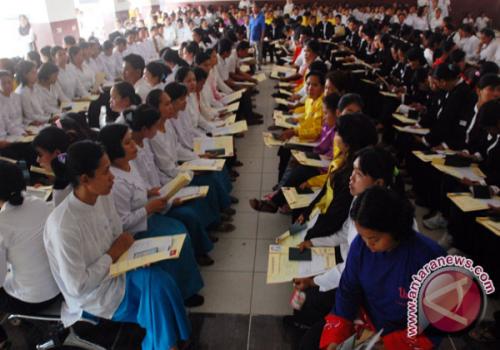 Usai memberikan sambutan, Bupati Bagiada didampingi Kepala Disnakertrans Made Sulastri, Plt Asisten III Ketut Derestika, mengucapkan selamat kepada seluruh peserta yang didampingi orang tuanya masing-masing