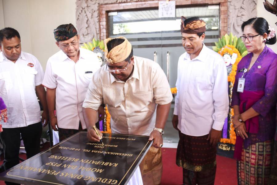 Bupati Buleleng, Putu Agus Suradnyana, ST didampingi Wakil Bupati Buleleng, I Nyoman Sutjidra, Asisten II dan III Setda Buleleng, Ni Made Rousmini dan Gede Suyasa meresmikan gedung baru Dinas PMPTSP Kabupaten Buleleng yang ditandai dengan penandatangan prasasti dan pemotongan kalung bunga.dalam sambutanya Bupati Buleleng merespon positif permohonan Dinas Penanaman Modal dan Perijinan Terpadu Satu Pintu (PMPTSP) dengan memberikan lampu hijau terkait permohonan anggaran sebesar 2 miliar untuk pengadaan peralatan IT. Pengadaan alat tersebut dimaksudkan untuk memaksimalkan pelayanan perijinan secara online di Kabupaten Buleleng. “