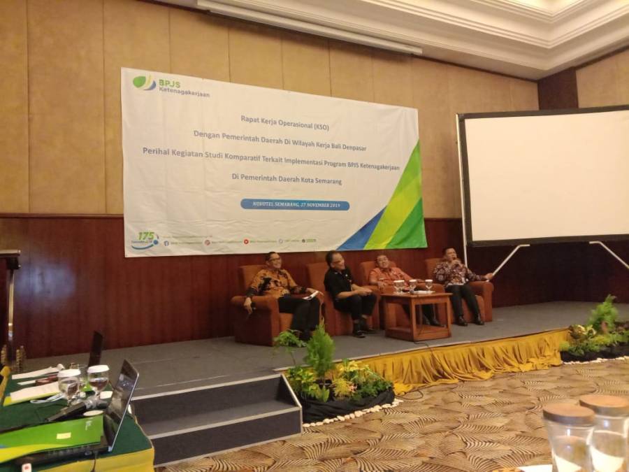 Dinas Tenaga Kerja Kabupaten Buleleng Yang Diwakili Kepala Bidang Hubungan Industrial Gede santika SH,Menghadiri Rapat Kerja Operasional prihal kegiatan study Komperatif terkait Implementasi program BPJS Ketenagakerjaan di Kota Semarang pada tanggal 28 Nopember 2019 bertempat dihotel Novotel Semarang. Acara diawali Sambutan dari BPJS Ketenagakerjaan perwakilan Bali dalam sambutanya dikatakan bahwa tujuan study ini adalah pertama Komperatif Terkait Implementasi program BPJS Ketenagakerjaan dan kedua adalah monev dan evaluasi program BPJS Ketenagakerjaan di lima Kabupaten yaitu Denpasar, Badung, Tabanan, Jembrana dan Buleleng.acara selanjutnya sambutan Wali Kota Semarang yang diwakili oleh Asisten II Setda Kota Semarang, dalam sambutannya dikatakan bahwa kota semarang yang dulunya sebagai kota industri dan sekarang berkembang sebagai kota pariwisata disebut The New Semarang. Macam wisata disemarang ada lima yaitu W Belanja, W Kuliner, W Alam, W Religius dan W Misteri. Kepesertaan BPJS Ketenagakerjaan di Non ASN sebanyak 8369 dan tenaga honorer sebanyak 3350 serta OPD yang belum masuk sebanyak 3 OPD, acara kemudian dilanjutkan dengan diskusi dan penyerahan cendramata.x