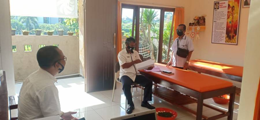 Selasa Rabu 3 Juni 2020 Dinas Tenaga Kerja kabupaten Buleleng Yang Diwakili Kepala Bidang Pelatihan Dan Produktivitas Ketut Merta S.Sos Bersama Kepala Seksi Satandarisasi dan Produktivitas Gede Suwenten Melakukan Visitasi LPKS OSHUN BALI COLLEGE